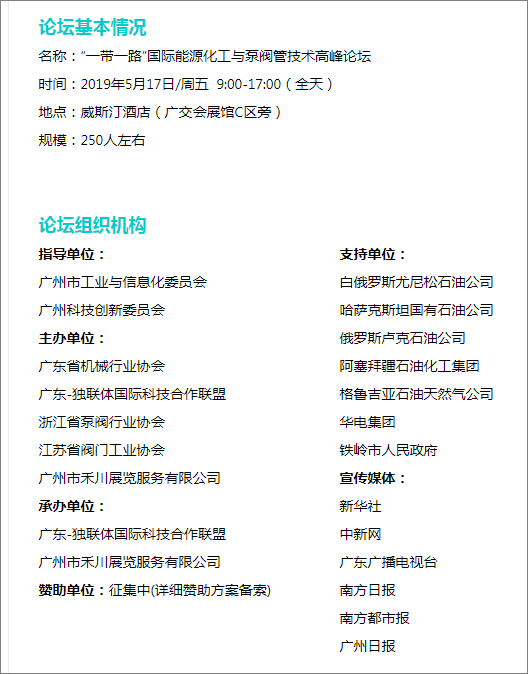 值得一提的是,為進(jìn)一步推動(dòng)我國能源化工與泵閥管技術(shù)制造企業(yè)與“一帶一路”沿線國家在石油化工、管道設(shè)施等企業(yè)間互聯(lián)溝通和貿(mào)易合作,為我國企業(yè)搭建B to C交流平臺(tái),同時(shí)深入實(shí)施國際科技創(chuàng)新驅(qū)動(dòng)發(fā)展戰(zhàn)略,匯聚“一帶一路”流體技術(shù)科技創(chuàng)新資源,加快成果轉(zhuǎn)化和產(chǎn)業(yè)創(chuàng)新升級(jí),主辦方將舉辦“一帶一路”國際能源化工與泵閥管技術(shù)高峰論壇。