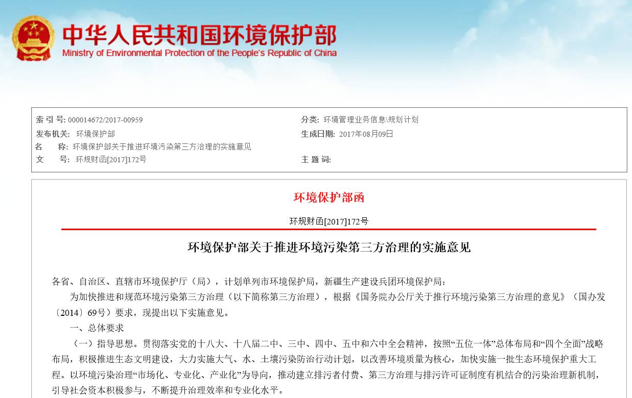 環(huán)境保護(hù)部關(guān)于推進(jìn)環(huán)境污染第三方治理的實(shí)施意見