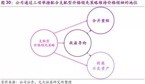 價格領(lǐng)袖是指經(jīng)由同業(yè)的龍頭公司現(xiàn)行制定產(chǎn)品某一期間內(nèi)的價格后,其它公司根據(jù)制定的價格,就其同質(zhì)產(chǎn)品確定其價格。行業(yè)的競爭對手如果期望維持已有的市場份額,只能與領(lǐng)先公司制定的價格相匹配。WM在通過兼并收購占據(jù)統(tǒng)治性的市場份額后,利用龍頭地位果斷選擇了支配型價格領(lǐng)先策略,進一步通過“收益導向策略”、“合并重組”、“剝離不良資產(chǎn)”這三項舉措的實施維持其價格領(lǐng)袖的地位。