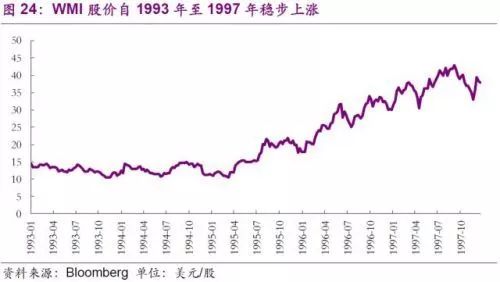 進入90年代,公司不滿足于現(xiàn)有的業(yè)務(wù)模式,意圖通過繼續(xù)的并購開拓多元化市場。然而結(jié)果卻超出了公司的預想。公司于1993年更名為WMX Technologies,意在體現(xiàn)公司多元化的業(yè)務(wù)范圍。通過收購,公司先后進入危廢、石棉移除、金屬腐蝕處理、甚至是草坪養(yǎng)護市場。與之前的垃圾焚燒和垃圾回收不同的是,上述行業(yè)在初期均需要大量資金投入,回報卻極其有限。公司的多領(lǐng)域擴張在一開始收到了回報,股價從1993年初的8.87美元一路上揚至1997年初的18.86美元,漲幅達112%。