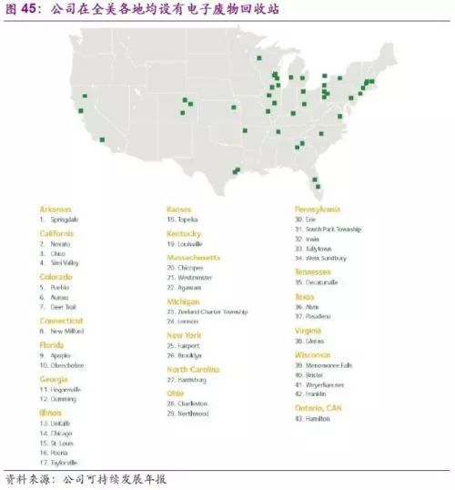 在電子廢物回收業(yè)務(wù)加速發(fā)展的同時,其他危廢處理也是公司關(guān)注的重點。公司的“At Your Door Special CollectionSM”正是專門為居民用戶處理危廢而推出的一站式服務(wù)。包括車用產(chǎn)品、電池、園林化學物質(zhì)、特別是熒光燈等危廢均可通過公司專用的危廢收集車上門收取。公司的固廢收集車(包括危廢)也是公司的一大亮點,截止2016年,已有多達18500輛使用天然氣驅(qū)動,在為環(huán)保服務(wù)的同時也真正做到了自我環(huán)保價值的體現(xiàn)。