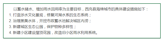 西充縣于今年2月出臺(tái)了《西充縣海綿城市建設(shè)計(jì)劃》及建設(shè)項(xiàng)目計(jì)劃,確定了到2020年達(dá)成目標(biāo):70%的年徑流總量控制率。
