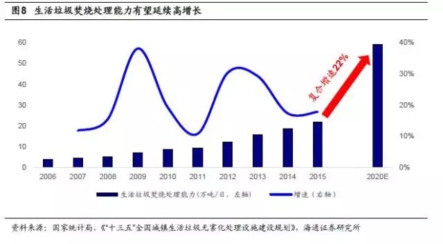 隨著中國城市化進(jìn)程的加快以及人民生活水平的提高,城鎮(zhèn)生活垃圾迅速增加,垃圾處理缺口巨大,垃圾焚燒將成為主要的生活垃圾處理方式。海通證券研究所預(yù)測,“十三五”期間“工程+運(yùn)營”市場接近3000億。另一方面,危廢處理能力的不足,使危廢行業(yè)擁有廣闊的市場空間。