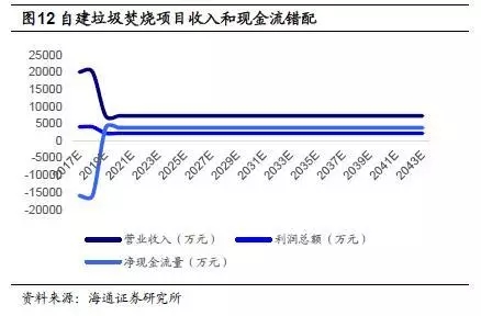 對于自建的垃圾焚燒BOT項(xiàng)目,其收入和現(xiàn)金流錯配,項(xiàng)目建設(shè)階段確認(rèn)的工程收入較多,確認(rèn)的利潤也通常較高,但沒有實(shí)際的現(xiàn)金流入,運(yùn)營階段項(xiàng)目的收入降低,但是有穩(wěn)定的經(jīng)營性現(xiàn)金流入。項(xiàng)目回收期較長,考驗(yàn)公司資金實(shí)力和融資能力。