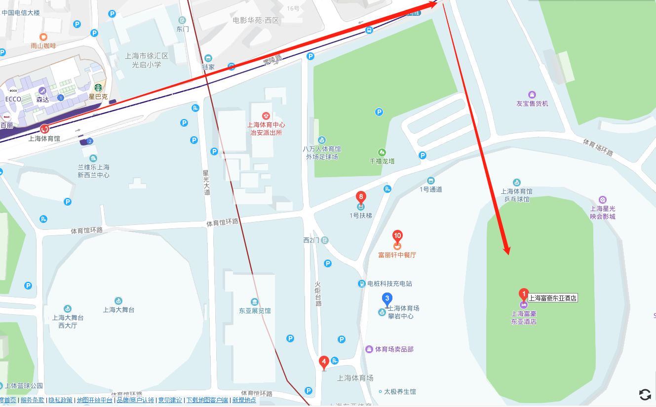 4.出租/駕車:上海市徐匯區(qū)火炬臺路零陵路800號(上海體育場內(nèi))上海富豪東亞酒店