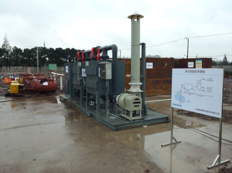 案例:中鎂科技(上海)有限公司土壤地下水修復(fù)工程(地下水修復(fù)部分)。土壤修復(fù)工程為期約1個(gè)月,并于2014年8月底委托上海市環(huán)境監(jiān)測(cè)中心進(jìn)行了土壤修復(fù)工程驗(yàn)收采樣監(jiān)測(cè),驗(yàn)收監(jiān)測(cè)結(jié)果達(dá)標(biāo)。地下水修復(fù)工程于2014年9月初開始,為期約5個(gè)月,并于2015年1月中旬委托上海市環(huán)境監(jiān)測(cè)中心進(jìn)行了地下水修復(fù)工程驗(yàn)收采樣監(jiān)測(cè),驗(yàn)收監(jiān)測(cè)結(jié)果達(dá)標(biāo)。該項(xiàng)目中,土壤采用異位高級(jí)化學(xué)氧化工藝進(jìn)行修復(fù),地下水采用原位多相抽提技術(shù)結(jié)合原位化學(xué)氧化技術(shù)進(jìn)行修復(fù)。