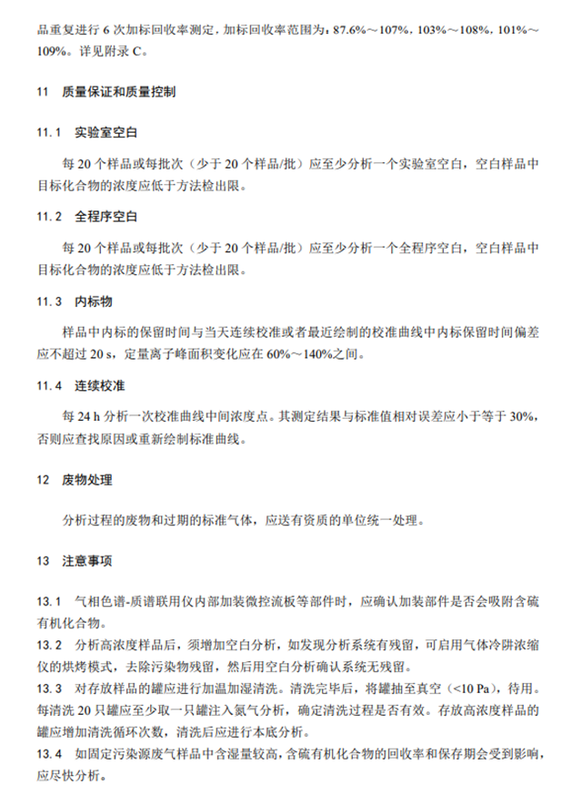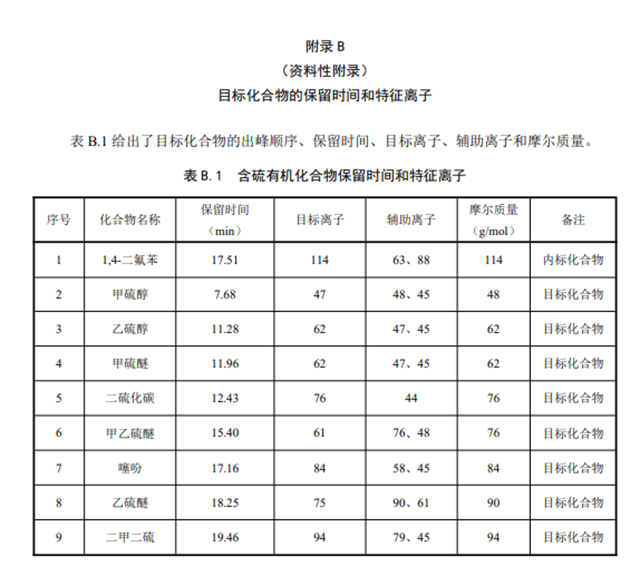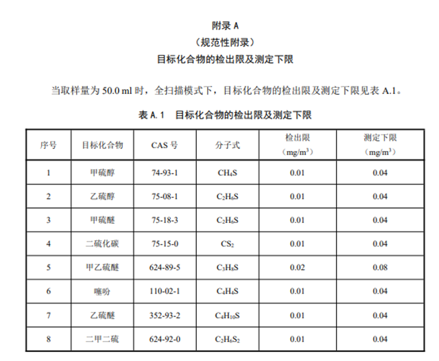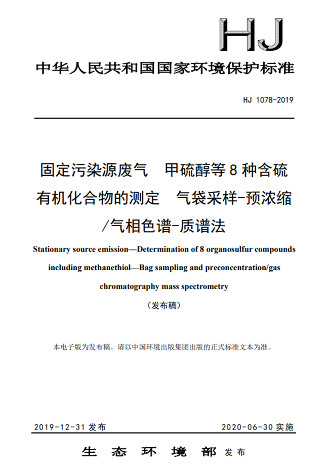 為貫徹《中華人民共和國環(huán)境保護(hù)法》和《中華人民共和國大氣污染防治法》,保護(hù)生態(tài)環(huán)境,保障人體健康,規(guī)范固定污染源廢氣中含硫有機(jī)化合物的測定方法,制定本標(biāo)準(zhǔn)。本標(biāo)準(zhǔn)規(guī)定了測定固定污染源廢氣中甲硫醇等8種含硫有機(jī)化合物的氣袋采樣-預(yù)濃縮/氣相色譜-質(zhì)譜法。本標(biāo)準(zhǔn)的附錄A為規(guī)范性附錄,附錄B和附錄C為資料性附錄。本標(biāo)準(zhǔn)為首次發(fā)布。