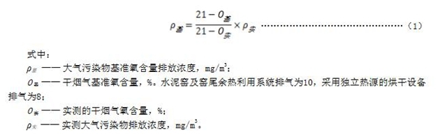 6.3正常工況下,對于水泥窯及窯尾余熱利用系統(tǒng)排氣、采用獨(dú)立熱源的烘干設(shè)備排氣,應(yīng)同時(shí)對排氣中氧含量進(jìn)行監(jiān)測,實(shí)測大氣污染物排放濃度應(yīng)按公式(1)換算為基準(zhǔn)氧含量狀態(tài)下的基準(zhǔn)排放濃度,并以此作為判定排放是否達(dá)標(biāo)的依據(jù)。