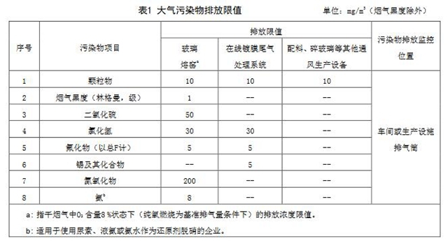 規(guī)定了玻璃熔窯煙氣中顆粒物、二氧化硫、氮氧化物排放限值,分別為10mg/m3、50mg/m3、200mg/m3;增加了氨逃逸控制指標(biāo),指標(biāo)限值為8mg/m3。加強(qiáng)了對大氣污染物無組織排放管控,廠界顆粒物排放限值由現(xiàn)行的1.0mg/m3變?yōu)?.5mg/m3;同時(shí)增加了無組織排放氨逃逸控制指標(biāo),排放限值為1.0mg/m3。
