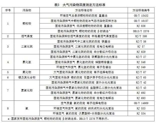 5.3.1大氣污染物的分析測定選取表3中所列的方法標(biāo)準(zhǔn)。