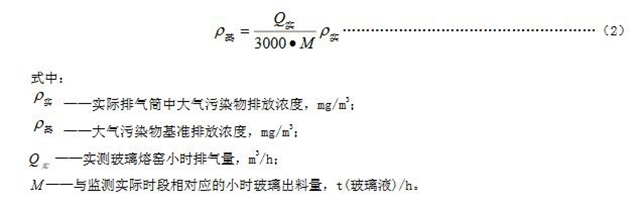 6.4純氧燃燒玻璃熔窯應(yīng)監(jiān)測排氣筒中大氣污染物排氣濃度、排氣量及相應(yīng)時(shí)間的玻璃出料量,按式(2)計(jì)算基準(zhǔn)排放量[3000 m3/t(玻璃液)]條件下的基準(zhǔn)排放濃度,并以此作為判定排放是否達(dá)標(biāo)的依據(jù)。