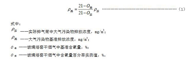 6.3正常工況下,對于玻璃熔窯排氣(純氧燃燒除外),應(yīng)同時(shí)對排氣中含氧量進(jìn)行監(jiān)測,實(shí)測排氣筒中大氣污染物排放濃度應(yīng)按式(1)換算為基準(zhǔn)含氧量為8%狀態(tài)下的基準(zhǔn)排放濃度,并以此作為排放是否達(dá)標(biāo)的依據(jù)。
