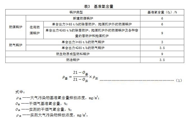 5.2大氣污染物基準(zhǔn)氧含量排放濃度折算方法實(shí)測的鍋爐顆粒物、二氧化硫、氮氧化物和汞及其化合物的排放濃度,必須按公式(1)折算為基準(zhǔn)氧含量排放濃度。鍋爐的基準(zhǔn)氧含量按表3的規(guī)定執(zhí)行。