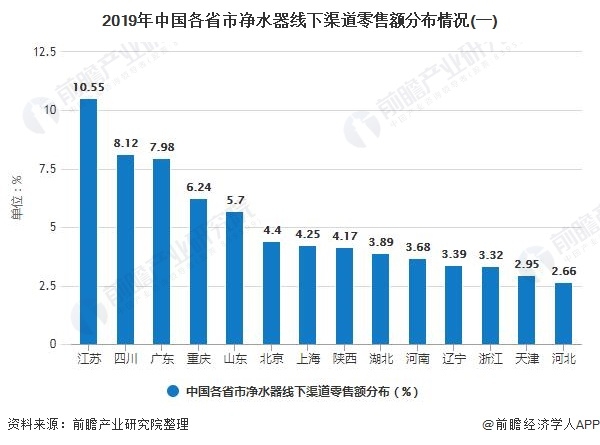 4、江蘇省凈水器需求旺盛,市場零售份額超10%