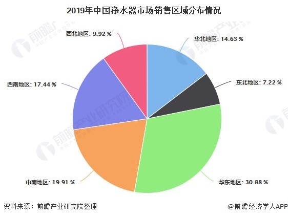 3、華東地區(qū)凈水器零售額占比高達30.88%