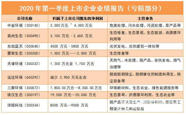 與此同時,由于疫情的傾向,一些環(huán)保企業(yè)的工程等無法按計劃進行,在很大程度上影響了公司的業(yè)績,具體如下: