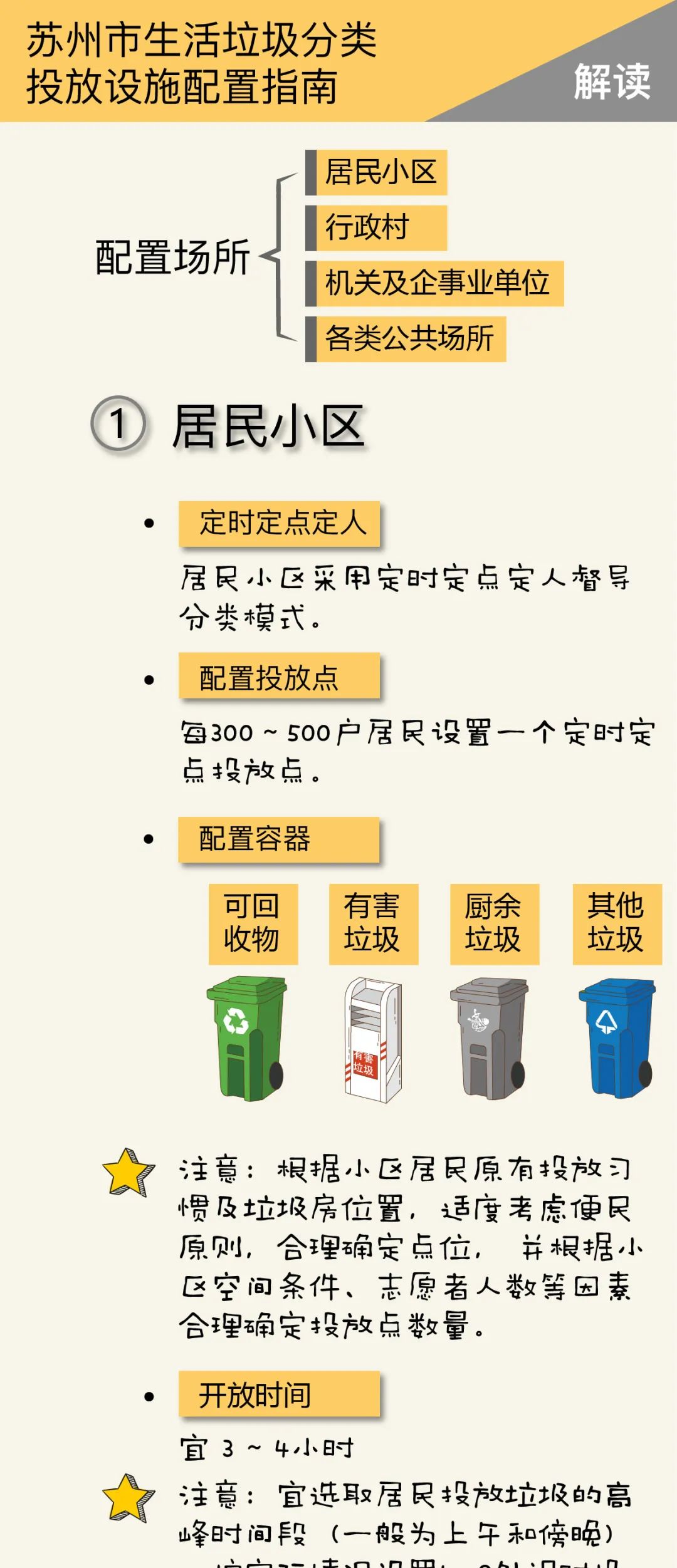 生活垃圾分類投放設(shè)施配置應(yīng)與區(qū)域分類收集、分類運輸、分類處理系統(tǒng)和生活垃圾產(chǎn)生量、收運頻率要求相適應(yīng)。本文匯總了有關(guān)蘇州市生活垃圾投放設(shè)施配置的知識,供大家參閱。
