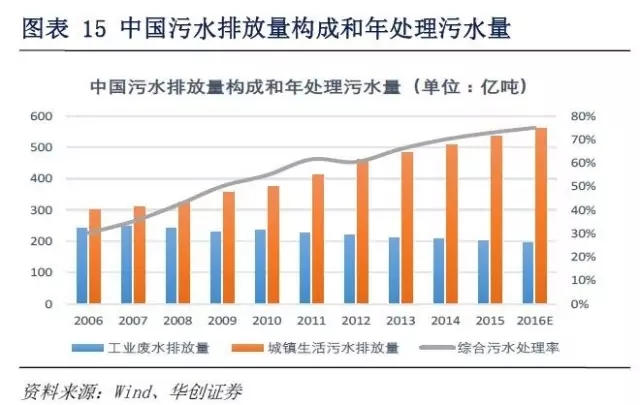 中國污水排放量構成和年處理污水量