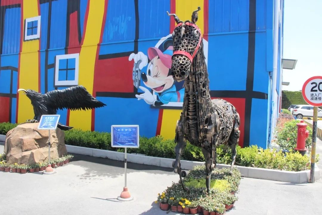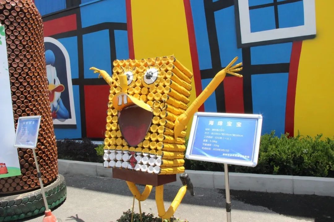 “看,這個(gè)是我們用290個(gè)飲料瓶,耗時(shí)32小時(shí)制作成的海綿寶寶;這個(gè)是用708個(gè)廢棄汽車零部件,耗時(shí)180個(gè)小時(shí)制作的一匹金色駿馬……”浦錦街道兩網(wǎng)融合中轉(zhuǎn)服務(wù)站運(yùn)營方介紹道。而作為“門面擔(dān)當(dāng)”的變形金剛大黃蜂,則全部是利用汽車、摩托車、滅火器等的舊零部件制成,重量達(dá)400余公斤。