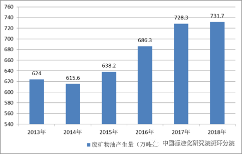 據(jù)統(tǒng)計,我國每年產(chǎn)生大量的廢礦物油,2013年我國廢礦物油行業(yè)產(chǎn)生量約624萬噸,到2018年產(chǎn)生量達(dá)到了731.7萬噸。