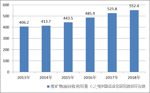 同時,我國廢礦物油的回收利用量也逐年攀升。2013年我國廢礦物油行業(yè)回收利用量約406.2萬噸,到2018年達(dá)到了552.4萬噸。