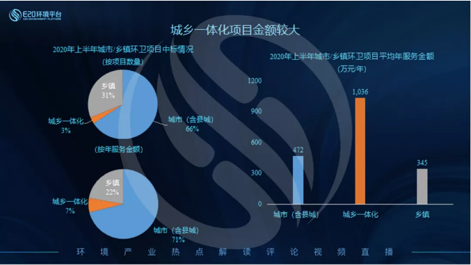 和2019年同期相比,2020年上半年環(huán)衛(wèi)市場釋放項(xiàng)目數(shù)量有所增加,新增年服務(wù)金額總額較2019年同期增長11.2%。我們知道,2019年9月我們曾經(jīng)盤點(diǎn)過一次,對比2018年業(yè)績同比是平滑不增的一年,那么,疫情影響下的環(huán)衛(wèi)市場化總規(guī)模上半年的同比增長,讓我們對2020年底的E20第十四屆固廢戰(zhàn)略論壇公布的環(huán)衛(wèi)十大影響力企業(yè)大榜和年終盤點(diǎn)充滿期待。