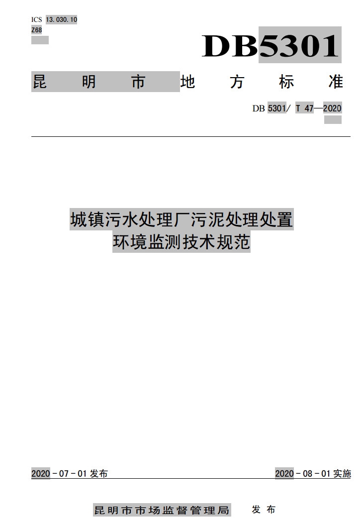 昆明市地方標(biāo)準(zhǔn)《城鎮(zhèn)污水處理廠污泥處理處置環(huán)境監(jiān)測(cè)技術(shù)規(guī)范》(DB 5301/ T 47—2020)于7月1日發(fā)布,將于2020年8月1日施行。