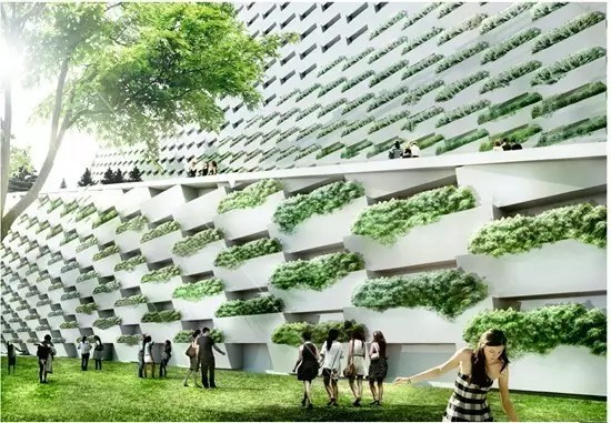 效果圖中用于種綠植的墻面