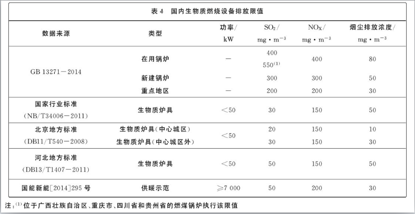 國內(nèi)目前沒有專門針對生物質(zhì)鍋爐排放的國家標準,根據(jù)《鍋爐大氣污染物排放標準》(GB13271-2014)中的有關(guān)規(guī)定,生物質(zhì)成型燃料鍋爐參照燃煤鍋爐的排放標準。同時國標還規(guī)定了新建鍋爐排放標準以及重點地區(qū)特別排放標準。國內(nèi)在小型生物質(zhì)爐具生產(chǎn)行業(yè)標準中有對其排放的相關(guān)要求。除了行業(yè)標準規(guī)定外,某些地方如北京、河北等對小型生物質(zhì)爐具排放也有各自的地方標準。