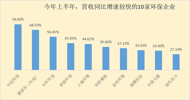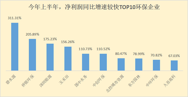 這一點,在今年上半年營收、凈利潤同比增速較快的環(huán)保企業(yè)中均有體現(xiàn)。