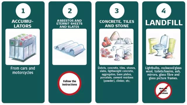 在Revas,垃圾被井然有序的分類在不同的區(qū)域:廢紙區(qū)、廢輪胎區(qū)、廢玻璃區(qū)、廢保溫棉區(qū)、廢建材區(qū)、廢木材區(qū)、自助廢棄物傾倒區(qū)和二手產(chǎn)品自取區(qū)。還有一個(gè)垃圾擠壓站,把篩選的垃圾進(jìn)行擠壓處理方便運(yùn)輸。