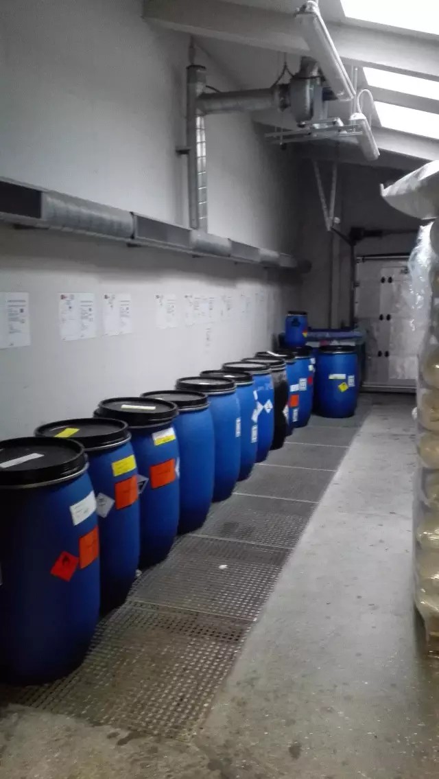 危廢這塊的收集比較嚴(yán)格,會(huì)被儲(chǔ)存在塑料桶中,然后集中放到一個(gè)小房間里面,這樣有效得隔絕了危廢和群眾的接觸。