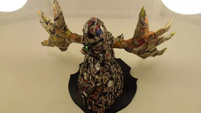 辦公室門(mén)口拜訪著一個(gè)利用廢棄物制作的小機(jī)器人模型