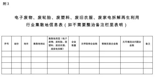 各省(區(qū)、市)按照清理整頓實施方案,先期開展本行政區(qū)域內(nèi)專項清理整頓摸排工作,并于2017年9月30日前將本省(區(qū)、市)再生利用企業(yè)信息表(集散地外)和集散地信息表(見附2、3)分別報送環(huán)境保護(hù)部、發(fā)展改革委、工業(yè)和信息化部、公安部、商務(wù)部和工商總局。