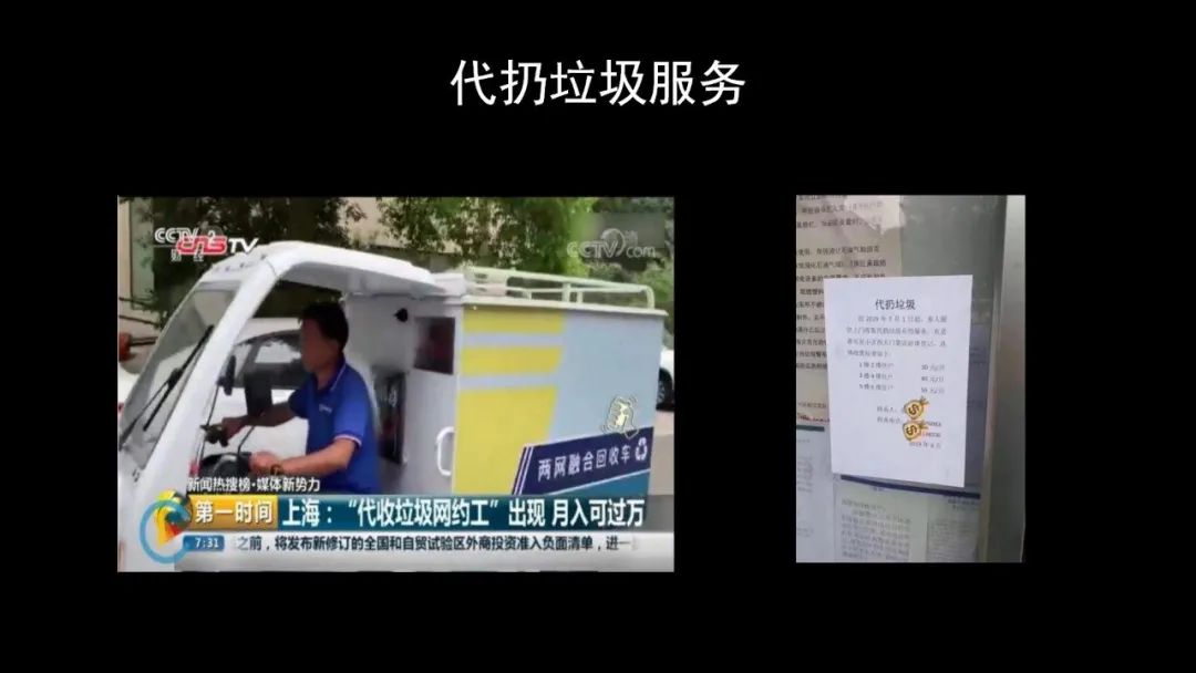 上海有大量的年輕人上班 996,定時(shí)定點(diǎn)投放垃圾,到這個(gè)時(shí)間我在上班我沒辦法投,怎么辦?這也是大家提出來的問題,所以有些年輕人就想了辦法,干脆我的垃圾請(qǐng)人代扔,我給你錢,這叫代扔垃圾;