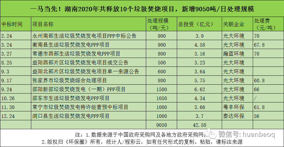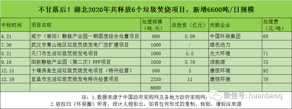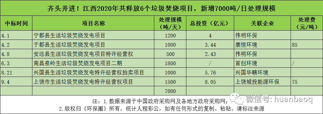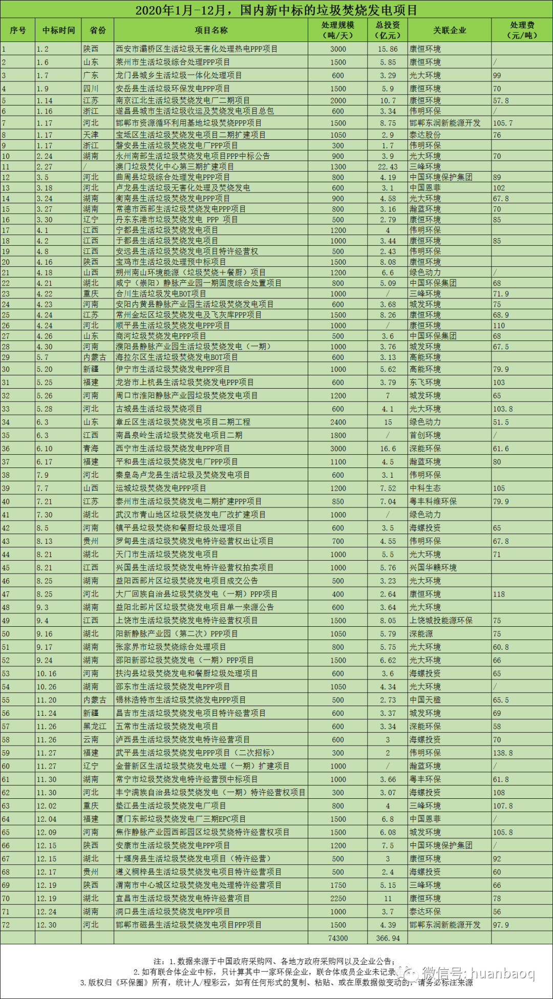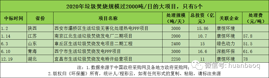 先是水務(wù)巨頭三峽集團旗下子公司在湖北宜昌15天內(nèi)接連中標2個垃圾焚燒發(fā)電訂單,高調(diào)“跨界”;緊接著半路出家、轉(zhuǎn)型不到3年的城發(fā)環(huán)境又要合并老牌環(huán)企啟迪環(huán)境,試圖打造黃河流域高質(zhì)量環(huán)保發(fā)展平臺;然后“康恒僑銀”CP組合又從中國天楹、高能環(huán)境、偉明環(huán)保等一眾固廢名企中脫穎而出,中標近5億元的湖北利川垃圾收集和焚燒發(fā)電一體化項目;最后,背靠浙江國資的浙能電力還擬以20.40元/股的價格,收購康恒環(huán)境最高5.9%的股權(quán)。“市場可以公開競標的項目一年比一年少,有些固廢名企的市場投資部都撤銷了,所以別再說什么垃圾焚燒項目‘跑馬圈地’了,都快沒‘地’可圈了?!?/span>某固廢企業(yè)市場投資部經(jīng)理表示。垃圾焚燒項目為啥少了?日處理規(guī)模數(shù)據(jù)為啥出現(xiàn)“斷崖式下滑”?市場真的沒“地”可圈了嗎?接下來,筆者將從項目分布的省份、日處理規(guī)模、總投資、中標企業(yè)、處理費等五大角度,通過大數(shù)據(jù)來解析一下2020國內(nèi)垃圾焚燒行業(yè)的四大特征,從而解釋之前高速增長的垃圾焚燒行業(yè)為何會在2020年迎來拐點?是“國補新政”惹得禍,還是市場真實需求在下滑?并提出“十四五”期間國內(nèi)垃圾焚燒市場發(fā)展的幾點建議,供大家參考。01