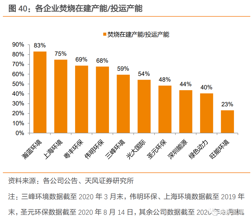 海外拓展穩(wěn)步推進,龍頭企業(yè)擁有多個海外運營項目。隨著國內(nèi)焚燒設(shè)備及技術(shù)的日漸成 熟,國內(nèi)垃圾焚燒發(fā)電企業(yè)已由早期的技術(shù)引進者轉(zhuǎn)向設(shè)備、技術(shù)輸出者,并通過海外并購等方式迅速開拓海外市場。目前已有多家企業(yè)擁有數(shù)個海外投資運營的垃圾焚燒發(fā)電項目,涵蓋東南亞、歐洲乃至美洲等多個區(qū)域。在國內(nèi)產(chǎn)能增速放緩背景下,企業(yè)“出?!被虺哨厔荨?/span>一方面,國內(nèi)新增產(chǎn)能增速呈放緩 趨勢;另一方面,海外新興市場空間廣闊。發(fā)展中國家城市生活垃圾的無害化率較低,對垃圾焚燒技術(shù)和裝備需求旺盛。國內(nèi)企業(yè)有望搭乘“一帶一路”政策東風(fēng),憑借成熟的技術(shù)與裝備進一步擴大海外業(yè)務(wù)規(guī)模,海外業(yè)務(wù)發(fā)展前景廣闊。展望未來,行業(yè)集中度提升+海外市場拓展,龍頭增速有望高于行業(yè)。垃圾焚燒行業(yè)具有一定的資金、技術(shù)壁壘,且對企業(yè)的項目運營能力有一定要求,龍頭企業(yè)優(yōu)勢突出,訂單獲取能力較強,疊加較強的并購整合能力以及海外業(yè)務(wù)拓展能力,增速有望高于行業(yè)。龍頭企業(yè)在建及籌建產(chǎn)能規(guī)模大,未來隨著在建項目逐步達產(chǎn),業(yè)績有望保持較快增長。