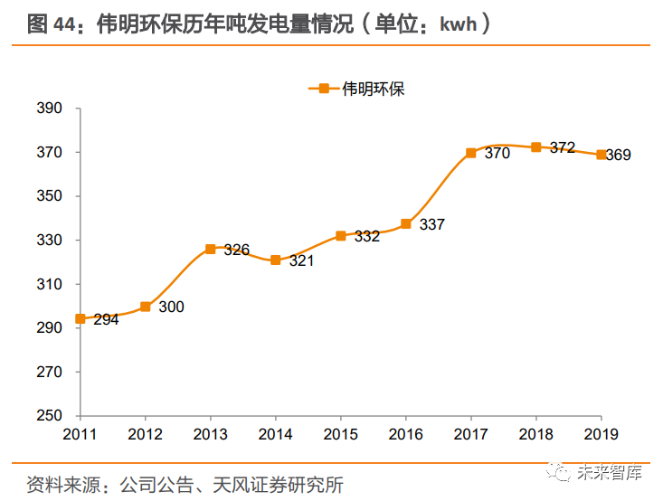 3.1.2. 運營占比提升+補貼發(fā)放提速,垃圾發(fā)電企業(yè)報表有望迎來修復(fù)運營占比提升,改善企業(yè)盈利能力及現(xiàn)金流情況。隨著企業(yè)在建項目陸續(xù)達產(chǎn),疊加國內(nèi)新增產(chǎn)能增速放緩背景下,項目新建數(shù)量增速或?qū)⒎啪?,企業(yè)運營項目占比有望提升。相較于投產(chǎn)期,運營期資本開支壓力減小,企業(yè)現(xiàn)金流壓力將得到緩解;同時企業(yè)資產(chǎn)負債 率下降,有助于降低財務(wù)費用,改善項目盈利能力。以偉明環(huán)保瑞安項目為例,該項目于 2010 年 8 月動工建設(shè),于 2014 年 5 月開始運營。進入運營期后,瑞安公司(瑞安項目的運營主體)資產(chǎn)負債率有所下降,同時凈利率有所提升。存量項目拖欠的補貼解決后,企業(yè)現(xiàn)金流有望得到改善。補貼發(fā)放不僅可以通過改善現(xiàn)金流,降低財務(wù)杠桿來減少財務(wù)費用,同時應(yīng)收賬款收回,前期應(yīng)收賬款計提減值沖回,也將增加公司當(dāng)期業(yè)績。截止 2020 年 4 月,全國垃圾焚燒運營規(guī)模 50 萬噸/日,其中未納入目錄項目占比約 48%,累計拖欠補貼金額約 130 億元。從企業(yè)具體情況來看,我們測算出 2016-2020 年各家企業(yè)的累計拖欠補貼,并以累計拖欠補貼金額占 2019 年營收的比例作為利好彈性的觀測值。若存量補貼發(fā)放,對垃圾焚燒發(fā)電企業(yè)將帶來較大的現(xiàn)金流改善。3.2. 熱值增+技術(shù)優(yōu)化,噸發(fā)電量有望持續(xù)提升垃圾焚燒廠噸發(fā)電量及噸上網(wǎng)電量提升趨勢明顯。近年來,我國垃圾焚燒企業(yè)噸發(fā)電量及 噸上網(wǎng)電量呈現(xiàn)出明顯提升趨勢。深圳市生活垃圾處理監(jiān)管中心的數(shù)據(jù)顯示,2011~2018 年間,垃圾焚燒企業(yè)的噸垃圾上網(wǎng)電量均值提升了 42Kwh。龍頭企業(yè)提升趨勢更明顯,偉 明環(huán)保噸發(fā)電量由 2011 年 294Kwh 提升 75Kwh 至 2019 年 369Kwh,噸上網(wǎng)電量由 2011 年 239Kwh 提升 52Kwh 至 2020H1 的 291Kwh;光大環(huán)境噸上網(wǎng)電量也由 2011 年 226Kwh 提升 94Kwh 至 2020H1 的 320Kwh。
