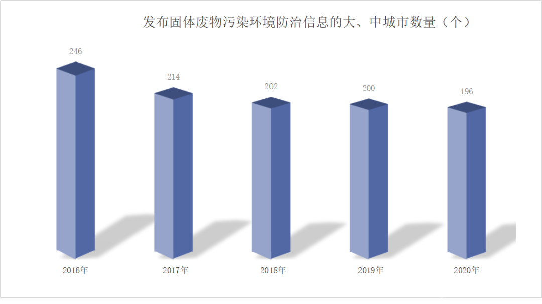 2、固體廢棄物信息化統(tǒng)計工作已經(jīng)初見成效,近年來200個左右的大、中城市固體廢物處置公報越來越準確地反應出我國固廢污染防治以及固體廢棄物處理處置工作的進程。