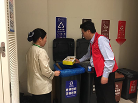 同時,上海中心大廈積極配合政府相關(guān)部門的現(xiàn)場指導(dǎo)檢查工作,不斷加強大廈內(nèi)部的垃圾分類工作的管理。