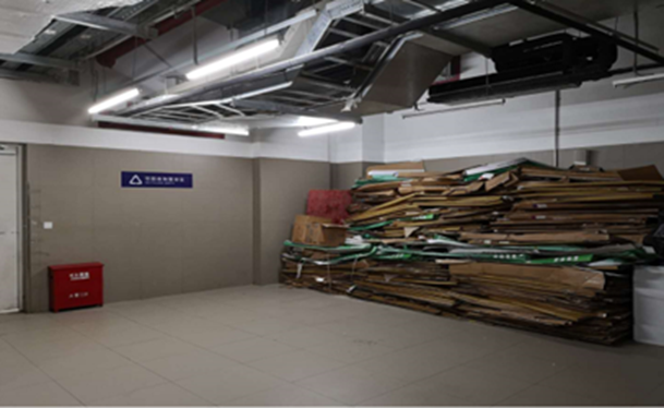 為了保證可回收物的正確分類,上海中心大廈物業(yè)在可回收物房內(nèi)設(shè)置了四個細化分類區(qū),用于將收集上來的可回收物進一步細分類:紙類、金屬類、塑料類、玻璃類。