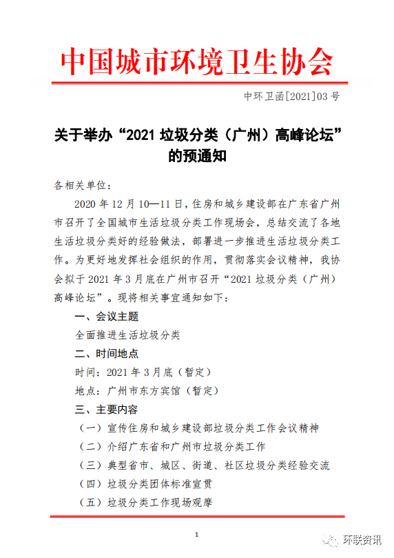 2021年3月底,由中國(guó)城市環(huán)境衛(wèi)生協(xié)會(huì)主辦,中環(huán)協(xié)垃圾分類專業(yè)委員會(huì)、廣東省環(huán)境衛(wèi)生協(xié)會(huì)、住建部環(huán)境衛(wèi)生工程技術(shù)研究中心共同承辦的2021 垃圾分類(廣州)高峰論壇將在珠江之畔盛大開(kāi)幕!