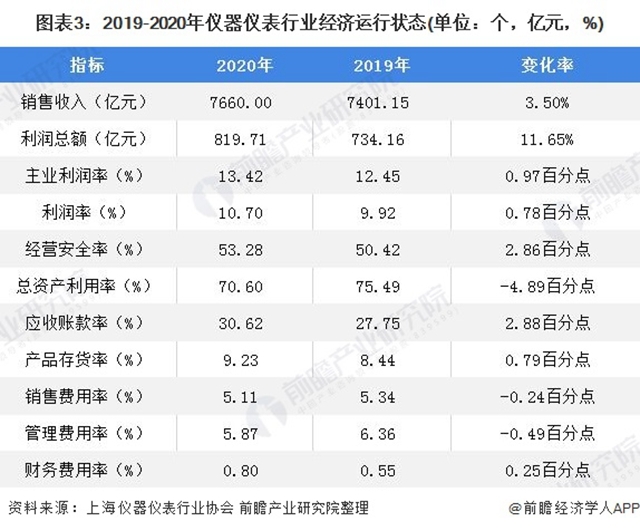 中國儀器儀表行業(yè)是一個高速、平穩(wěn)發(fā)展的行業(yè)。2020年儀器儀表行業(yè)銷售收入、利潤總額、主業(yè)利潤率、利潤率、經(jīng)營安全率、銷售費用率和管理費用率等7個指標好于2019年同期,其余4個指標差于2019年。