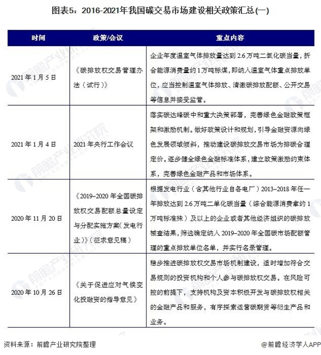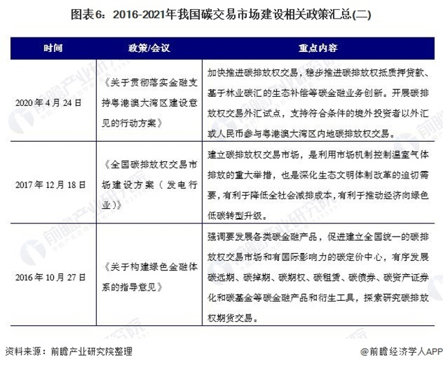 碳排放權(quán)交易體系是實(shí)現(xiàn)低成本碳減排的關(guān)鍵。2016-2021年是我國碳交易市場的黃金時(shí)期,我國出臺(tái)了一系列政策建立包括建立相關(guān)綠色金融、碳中和等來推動(dòng)碳交易市場發(fā)展,具體政策匯總?cè)缦拢?/div>