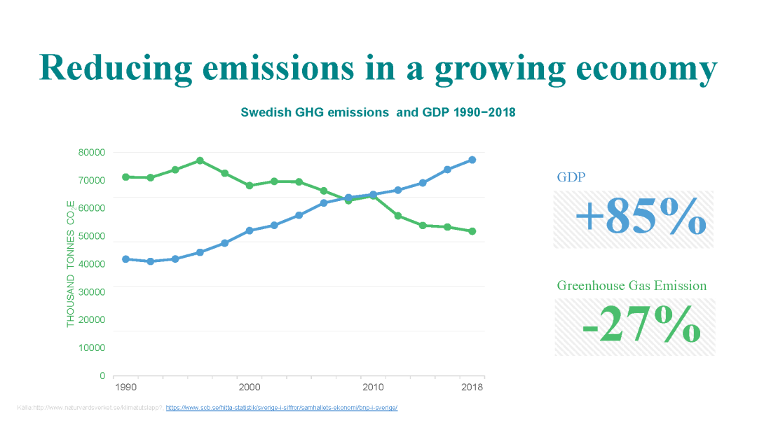 瑞典是提出來在2045年達到碳中和,中國是2060年,在這方面我們也是接下來一個很重要的工作重點,我們目前也在跟瑞典駐華大使館做很多的交流,接下來可能會有很多這方面的戰(zhàn)略性的合作。這個圖片是想跟大家聊一下碳達峰、碳中和和經(jīng)濟的關(guān)系,有很多國家在比較靠前的時間就實現(xiàn)了碳達峰,有兩種原因。一種原因就是因為經(jīng)濟沒有很好的發(fā)展,整體排放量不會增加。另一種經(jīng)濟還是快速發(fā)展,但是它的碳排放已經(jīng)脫鉤了,是一個下降的趨勢,瑞典就是這種的一個代表。比如我們可以看到,它在九幾年的時候,綠線已經(jīng)達到了碳達峰,后續(xù)一直在降低。到2045年會達到中和,會到0左右。但是它的GDP一直是快速的增加,這個對碳中和是更加有意義的一種方向。