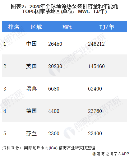 關(guān)于全球地源熱泵裝機情況,根據(jù)國際地熱協(xié)會(IGA),全球地源熱泵裝機容量最大的五個國家是:中國、美國、瑞典、德國和土耳其,占世界的71.1%。2020年我國地源熱泵裝機容量26450MW,位居全球第一位,并且是連續(xù)多年位列世界第一,地源熱泵產(chǎn)業(yè)已走在世界前列;