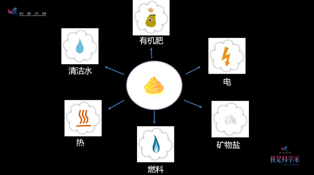 糞便可以做肥料,但是要處理,保證它安全。還有氮肥、磷肥、鉀肥,我們種莊稼的時(shí)候加了這些肥料,長(zhǎng)成了糧食,長(zhǎng)成了蔬菜;或者通過喂飼料,養(yǎng)成了雞鴨魚肉。這些元素都進(jìn)到你的家庭,然后90%又跑到糞便里去了。