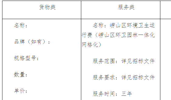 二、項目名稱:嶗山區(qū)環(huán)境衛(wèi)生運行費(嶗山區(qū)環(huán)衛(wèi)園林一體化網(wǎng)格化)