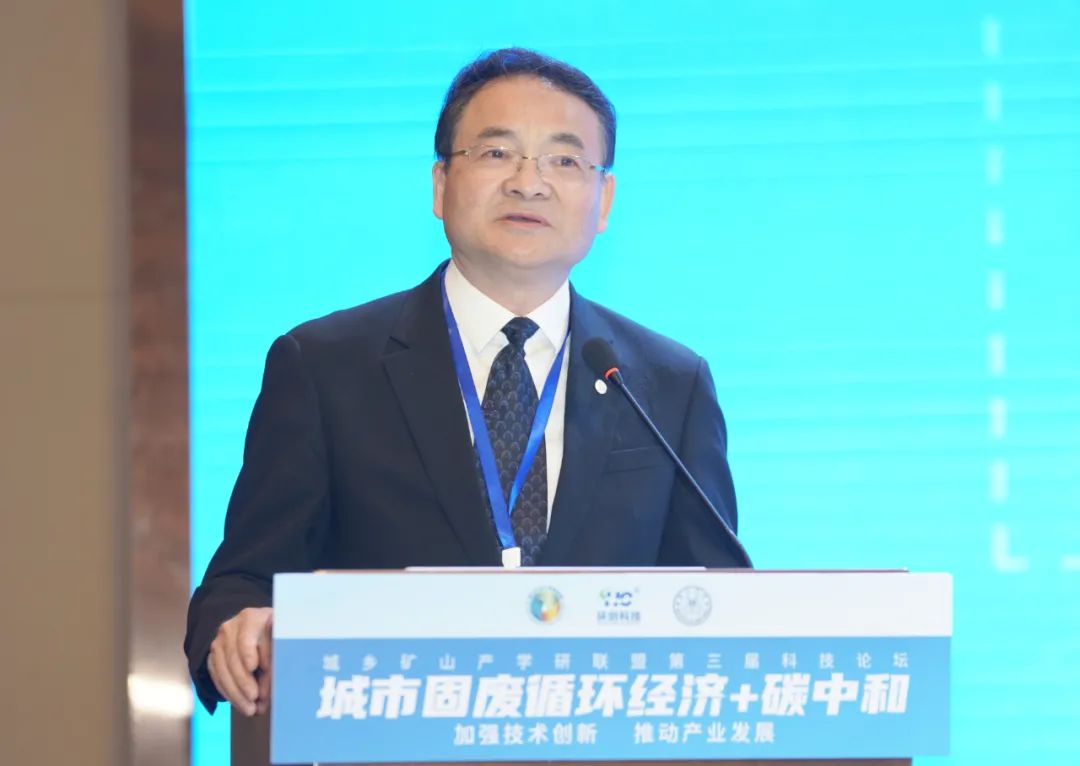 中國(guó)工程院陳勇院士在論壇發(fā)言中指出,城鄉(xiāng)礦山產(chǎn)學(xué)研聯(lián)盟論壇的迅速壯大,意味著國(guó)家和社會(huì)對(duì)固廢資源化處置更加關(guān)注和重視,從事固廢資源化處置研究的科研院校和企事業(yè)單位也越來(lái)越多,從而將極大推動(dòng)處置技術(shù)的快速進(jìn)步,促進(jìn)“碳達(dá)峰”“碳中和”。