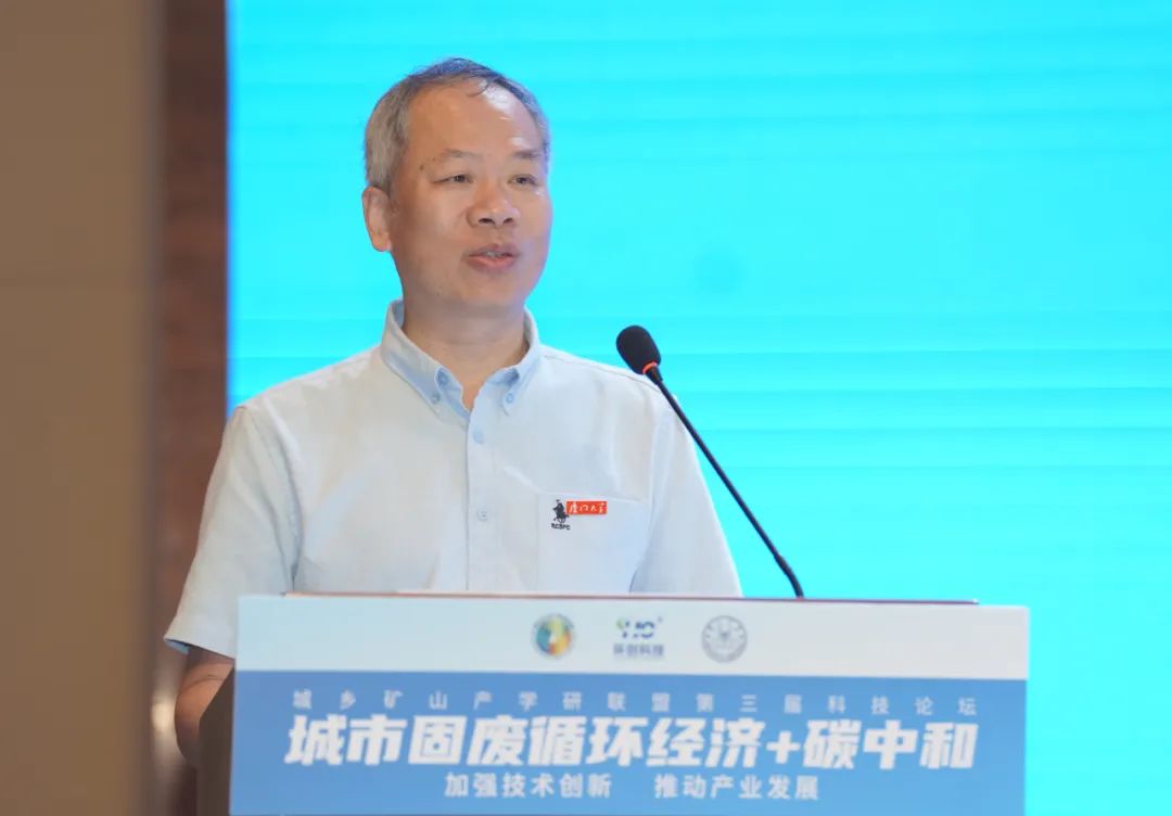 廈門(mén)大學(xué)校長(zhǎng)助理張建霖教授向大會(huì)致辭,介紹了廈門(mén)大學(xué)在“碳中和”領(lǐng)域工作情況,期待與城鄉(xiāng)礦山產(chǎn)學(xué)研聯(lián)盟,以及各科研單位攜手一道推進(jìn)無(wú)廢城市建設(shè)。